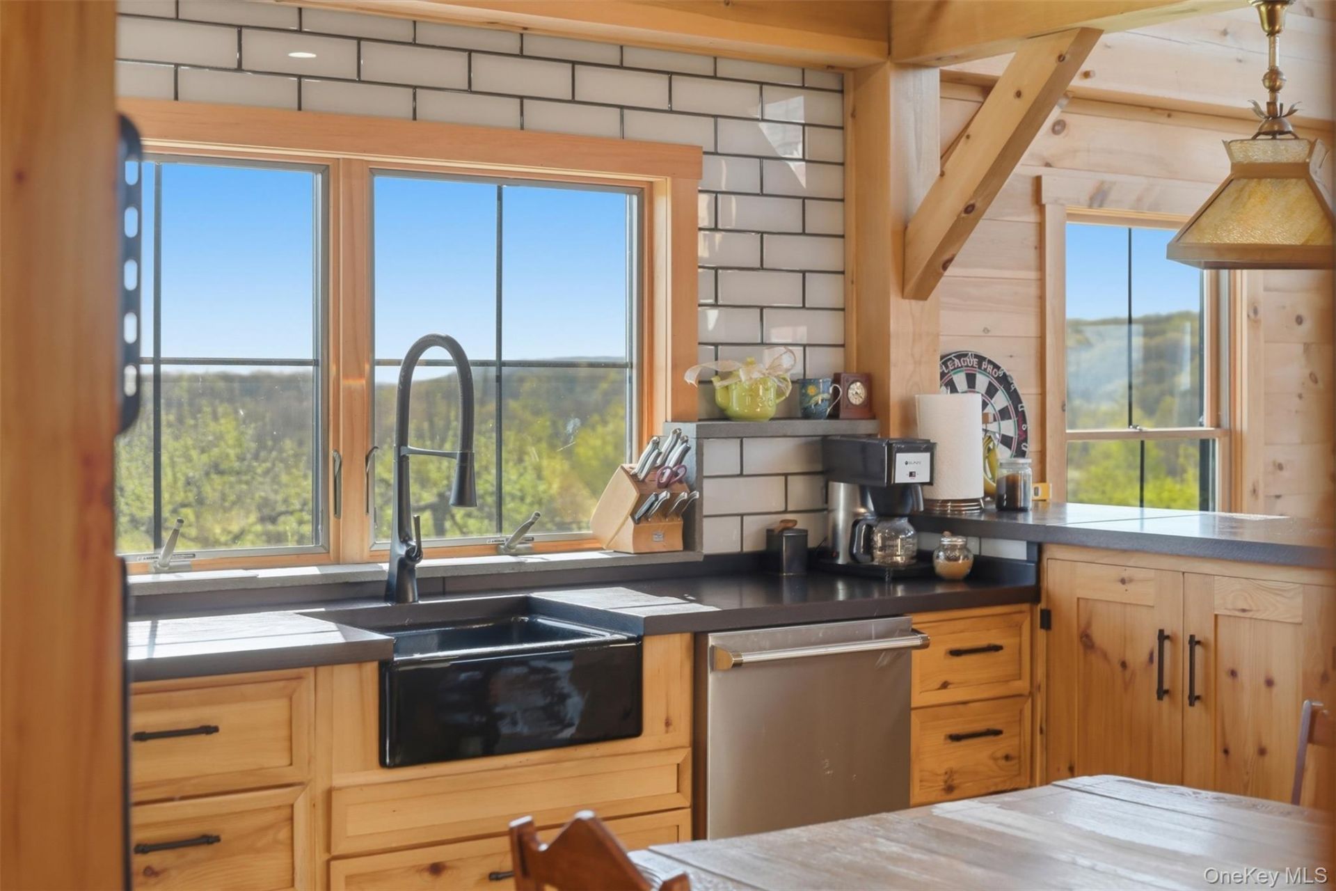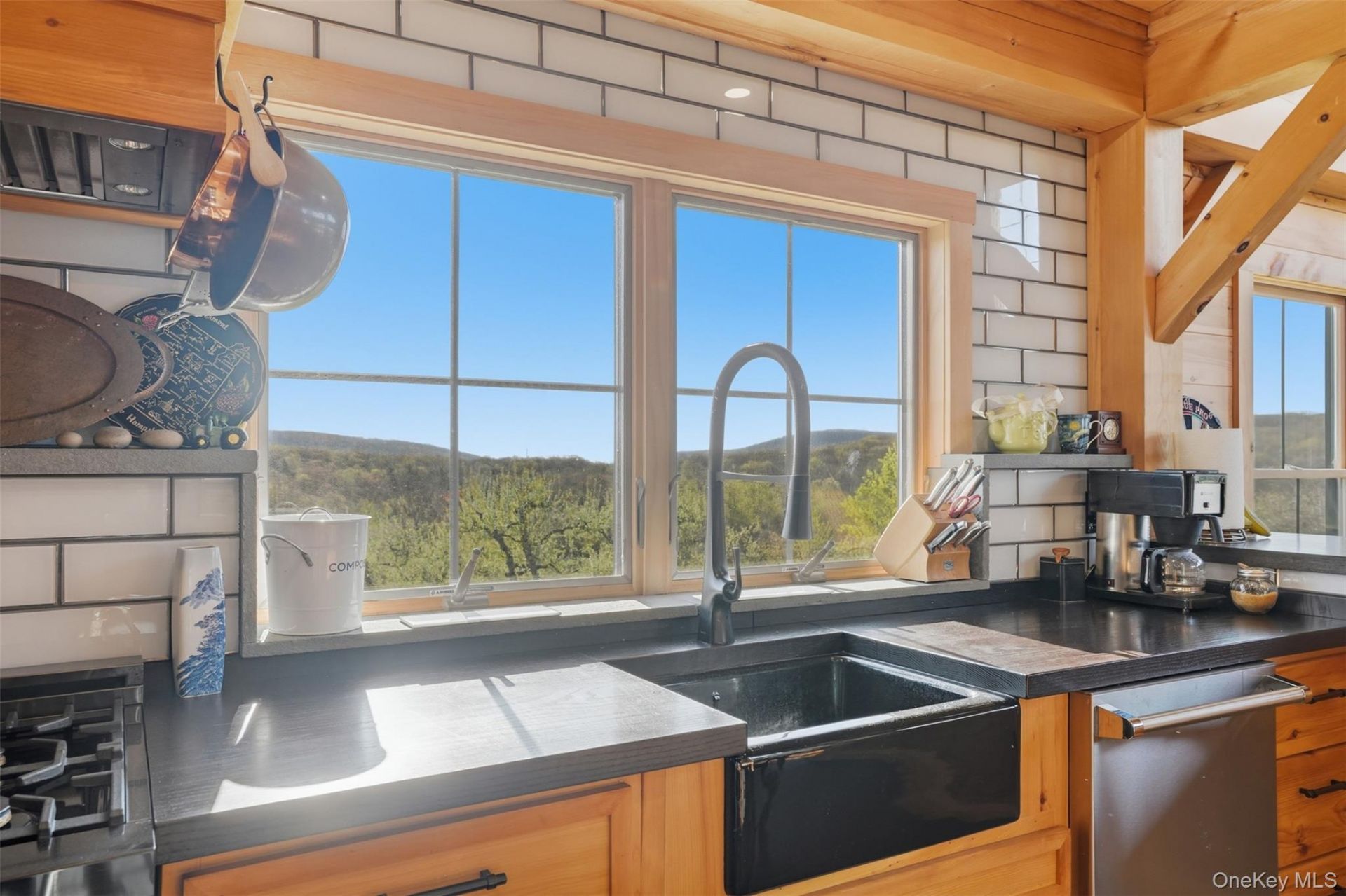 This bold red barn-style home sits atop a hill like a postcard extolling the beauty of the Hudson Valley. Built to exacting specifications and with an understanding of how people live best by a master craftsman, this is a post and beam masterpiece in an inspiring setting. Uniquely, it offers all the bells and whistles you expect in a new luxury home while also feeling like an heirloom. Set on 4 acres in Highland, NY it's surrounded by rows of apple trees (planted purely for aesthetics), beautiful stonework, and patios that are the perfect perches from which to enjoy the beautiful valley views (you can actually see Mohonk from the street), sunrises, and sunsets. Inside, the house delivers the romantic visions the exterior conjures. The exposed timber-frame structure feels like a cathedral, matching wood-clad walls and ceilings are wonderfully warm, and the whole house smells like a fresh pine forest. Black metal railings, black windows, and black French doors bounce light around and add exactly the right dash of modern style and cohesive design. It's perfect. The great room is filled with light from every angle; the open, second-story loft/lounge is large enough for an entertainment space, game space, and office space, and the bedrooms are light-filled and so cozy. A third-floor loft offers space for a studio or bunks. And above it all, the windowed cupola connects the entire house to the sky, the universe, the galaxy. Brazilian cherry floors punctuated by stone at the entrances (again, this is SO well designed) provide the perfect anchors. The kitchen is, of course, the kind you cook in on Saturday mornings in your favorite sweater - farmhouse sink, breakfast bar seating, Viking appliances, and a window view over the apple orchard. The first-floor primary bedroom's soaking tub and walk-in shower are luxurious, and the stone accents on-point. The two-car garage is beautiful, heated, and electrified with first-floor space for a workshop and a second floor with exterior stairs - it could be finished as a studio, guest quarters, or entertainment space. Highland is a wonderfully convenient spot on the Hudson - close to major roadways that can take you to Poughkeepsie, NYC, New Paltz, the Shawangunks, Catskills, and Albany. But honestly, you'll likely find you rarely want to leave.